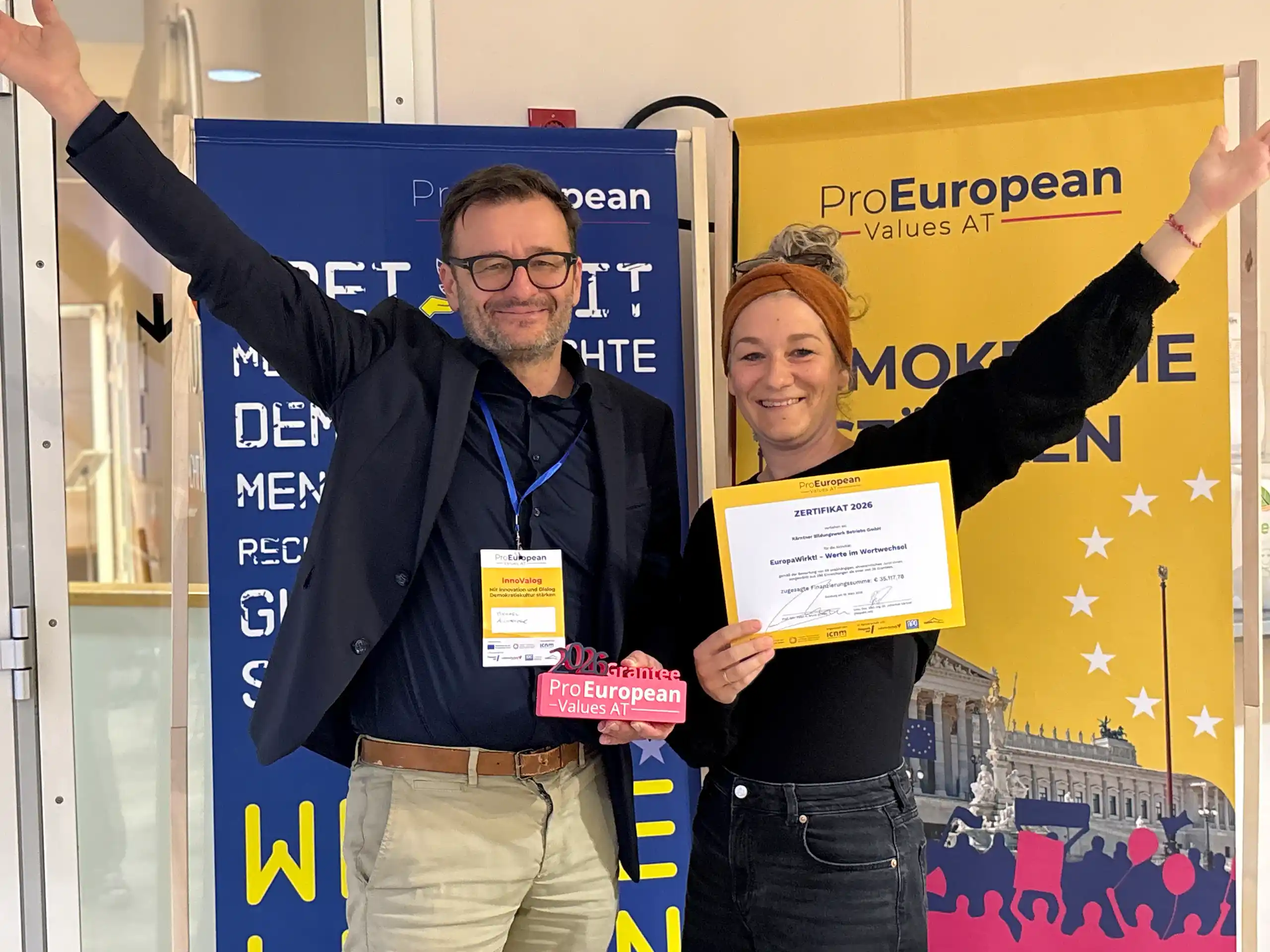 EuropaWirkt! Werte im Wortwechsel Laufzeit: 01. April bis 31. Dezember 2026 Michael Aichholzer, Geschäftsführer des Kärntner Bildungswerks, und Sandra Bergner, Texterin im Projekt „EuropaWirkt! – Werte im Wortwechsel“ bei der Kick-off-Veranstaltung (Innovalog 2026) (c) ProEuropeanValuesAT Im Rahmen des diesjährigen Aufrufs…