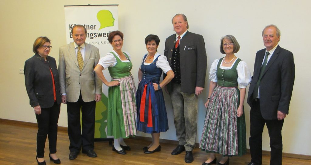 V.L.N.R.: ERNA KIENLEITNER (Schriftführerin), GERHARD SCHLATTE-SCHATTE (Kassier-Stellverterter), ELISABETH PUTZ (Bezirksobfrau Klagenfrut), PETER FERCHER (Landesobmann), KARL SCHWABE (Bezirksobmann), ROSA HOBEL (Literaturbeauftragte), SYLVIA SCHMERLAIB (Referentin für Brauchtum/Tracht), ROSI KAINZ (Bezirksobmannstellvertreterin),