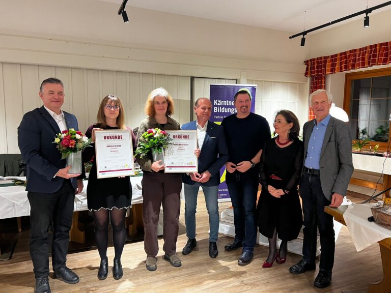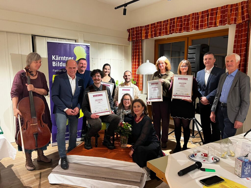 Das Kärntner Bildungswerk informierte die fünf Autor:innen über den Entscheid und lud in den Finkensteinerhof in die Marktgemeinde Finkenstein am Faaker See zur Lesung & Prämierung ein. Im Anschluss an die Lesung verkündete Bürgermeister Christian Poglitsch die Platzierungen und überreichte gemeinsam mit Bezirksobmann des Kärntner Bildungswerks, Erwin Winkler, die von der Marktgemeinde Finkenstein am Faaker See gestifteten Preisgelder (1. Platz 1.000 Euro, 2. Platz 500 Euro, 3. Platz 100 Euro) sowie zwei Ehrenpreise des Marktcafe´s Finkensteiner Nudelfabrik.