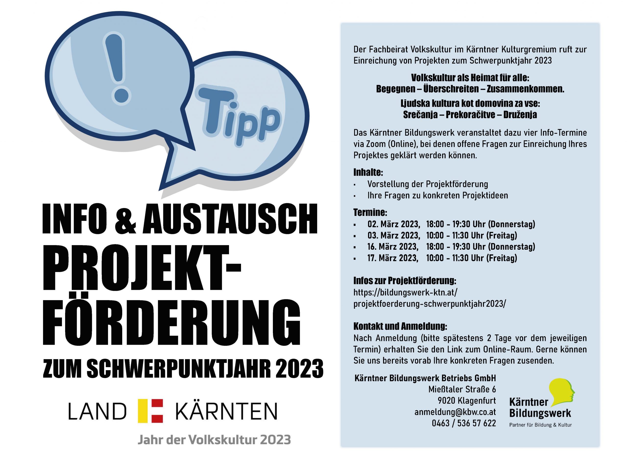 Das Kärntner Bildungswerk veranstaltet dazu vier Info-Termine via Zoom (Online), bei denen offene Fragen zur Einreichung Ihres