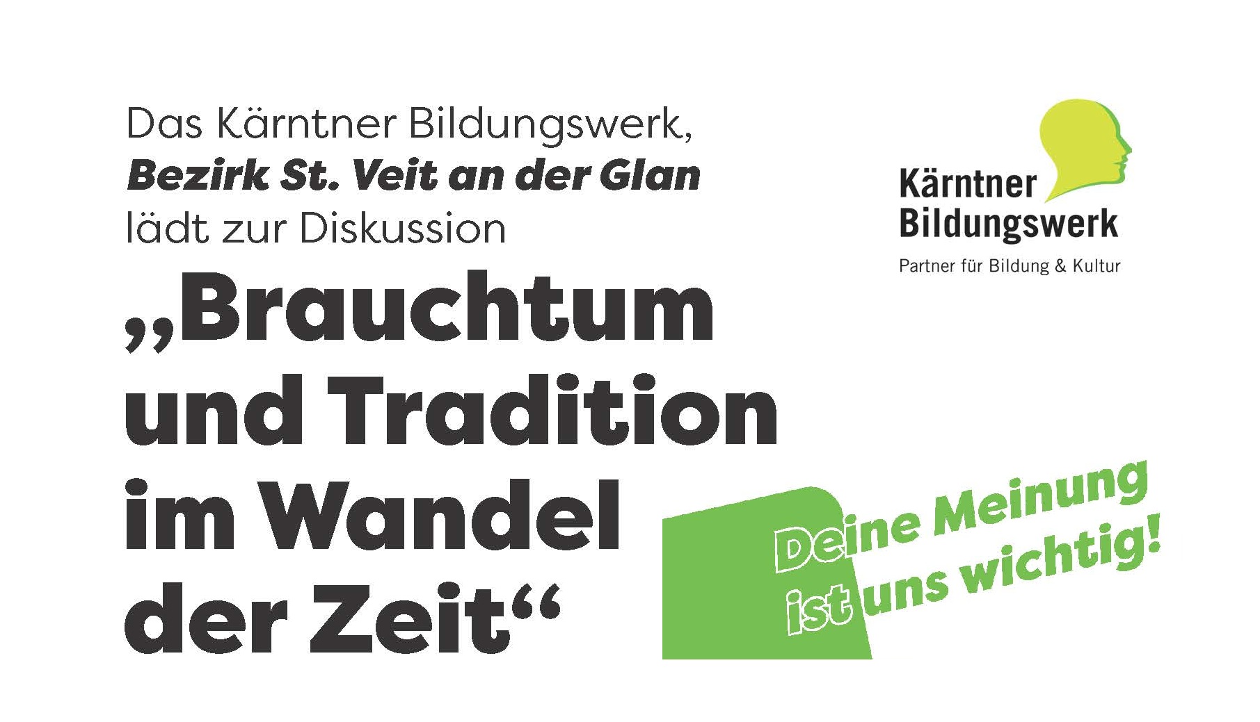 Das Kärntner Bildungswerk, Bezirk St. Veit an der Glan, lädt zur Diskussion. Eröffnet wird die Diskussion durch die Singgemeinschaft Sörg.