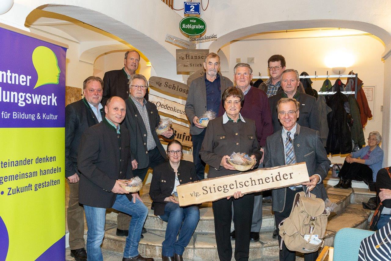 Vor 2 1/2Jahren hat Bezirksobmann Alois Spitzer ein Projekt über die Vulgarnamen in der Region Kärnten Mitte begonnen, mit dem Ziel, die alten Hausnamen in zumindest sechs Gemeinden zu erheben, ihre Bedeutung und Herkunft zu klären und möglichst viele Vulgarnamenbesitzer dazu zu motivieren, ihre Namen an ihren Häusern sichtbar zu machen. Mit drei Präsentationsabenden in Feldkirchen hat das Projekt nunmehr seinen Abschluss gefunden, aber keineswegs die Beschäftigung mit dem Kulturgut Vulgarnamen.