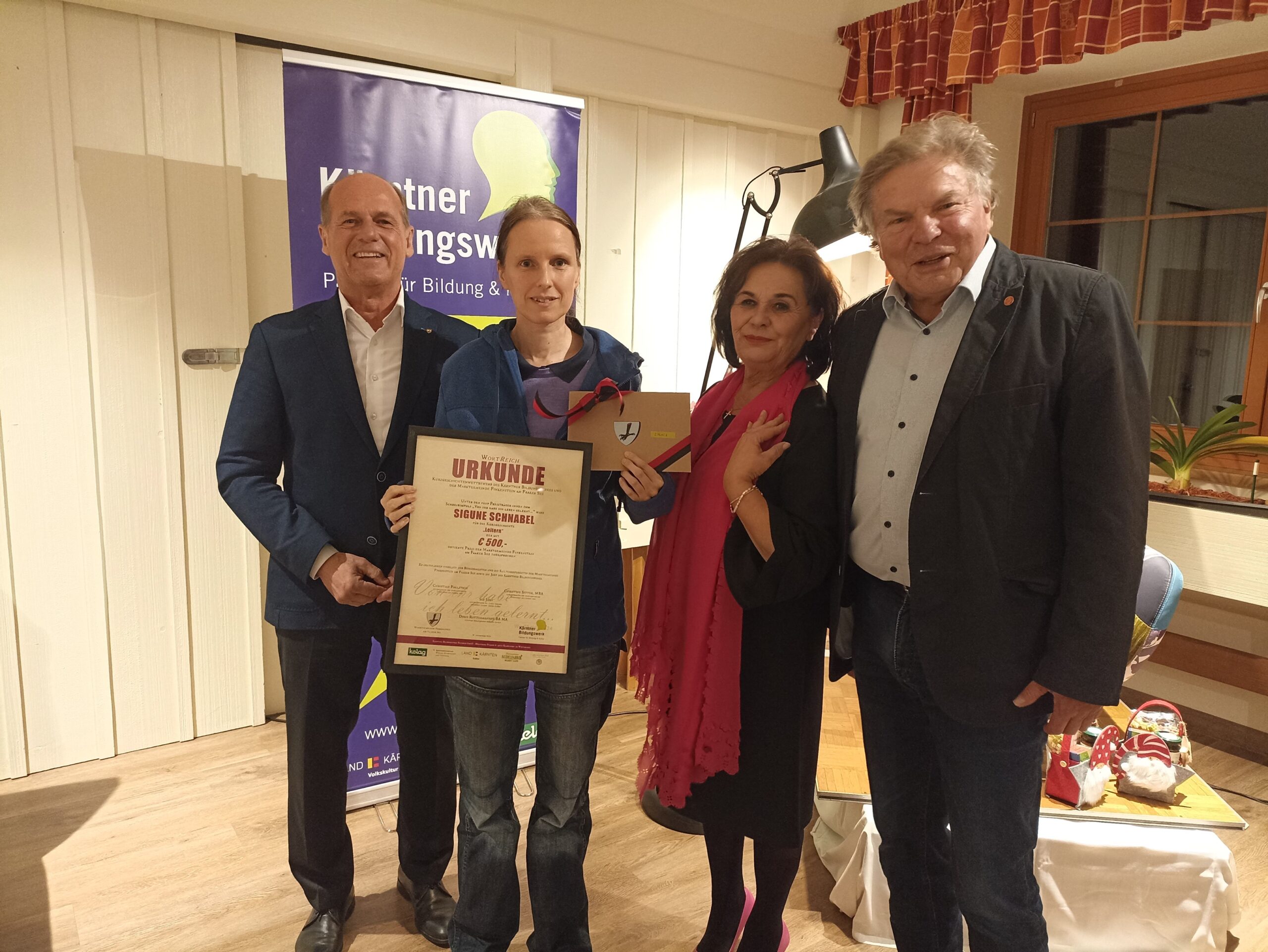 Bürgermeister Christian Poglitsch, Sigune Schnabel (Platz 2 & Publikumspreis), Kulturreferentin Christine Sitter, Landesobmann Kärntner Bildungswerk Peter Fercher